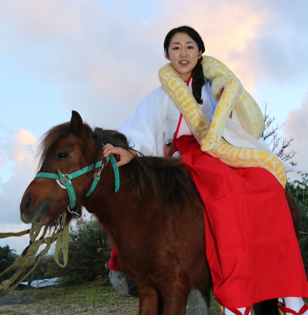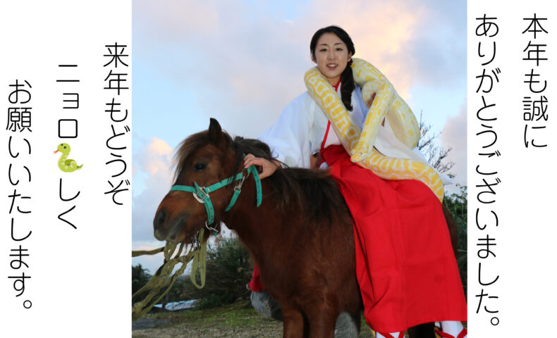 巫女姿で馬に乗り、首にはヘビを巻いて…と、今振り返ってもなかなかインパクトの強い年の瀬でした。。。